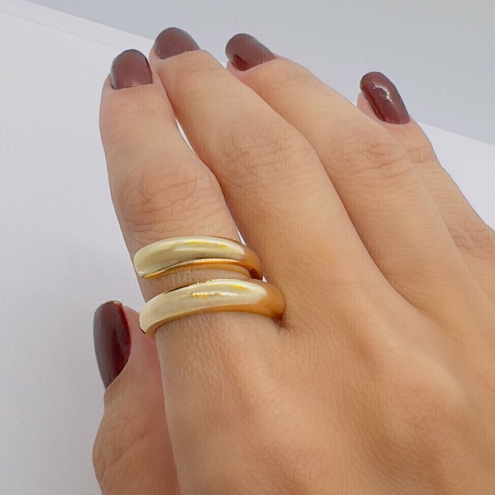 Dois traços que se encontram no seu estilo. Com design minimalista e toque moderno, este anel ajustável envolve o dedo com elegância e liberdade. Um charme sutil que transforma qualquer look com sofisticação e leveza.