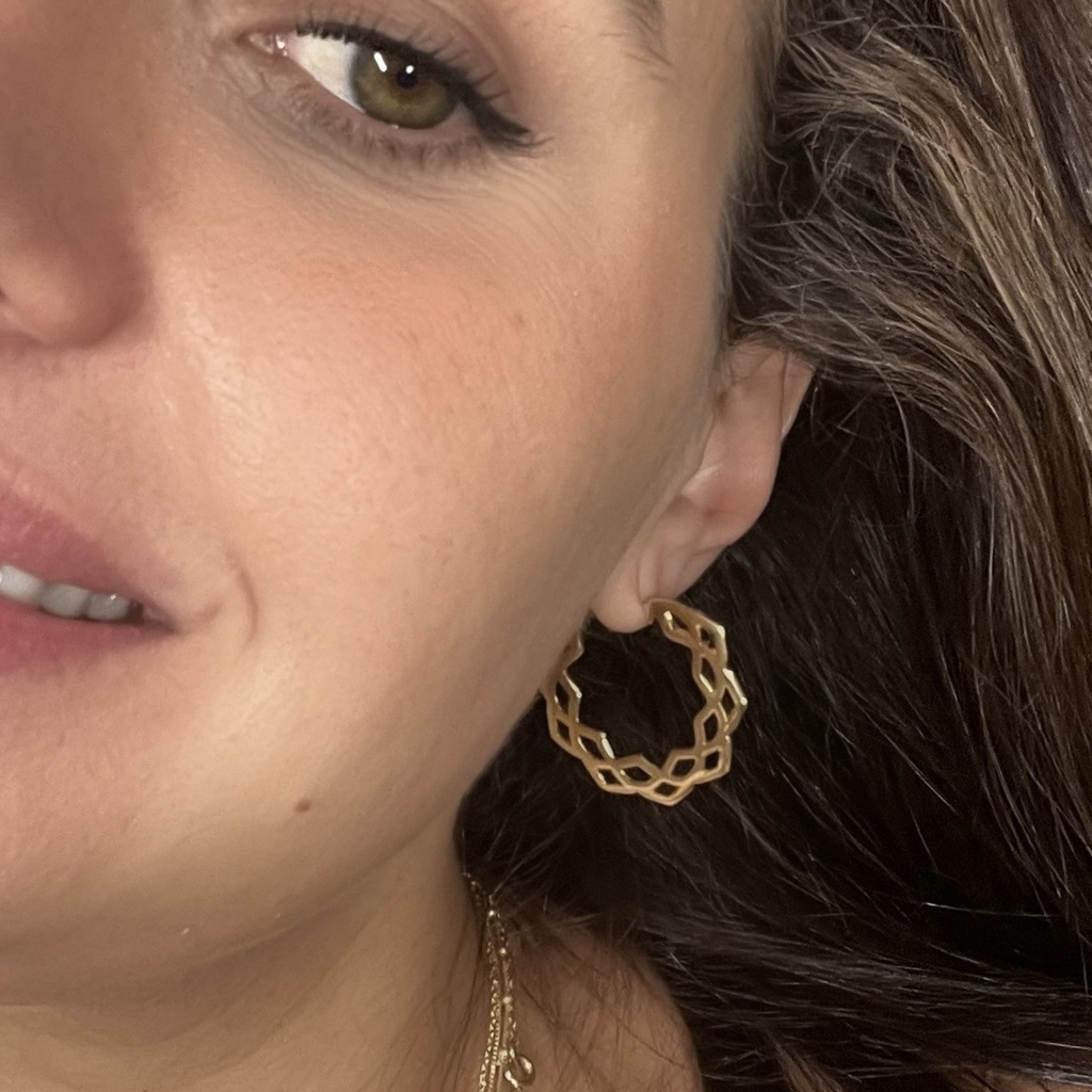O Brinco Renda é uma argola delicada e sofisticada, toda trabalhada para parecer uma renda. Seu design detalhado adiciona um toque de elegância e charme ao seu visual, sendo perfeito para ocasiões especiais onde você quer se destacar com estilo.