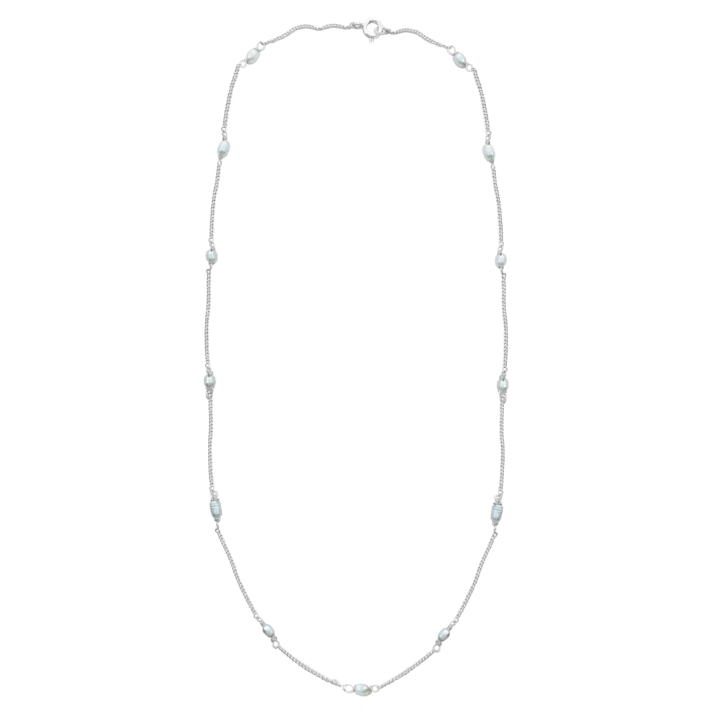 Colar encantador combina a elegância da prata com a delicadeza das pérolas de água doce que trazem um brilho suave. Colar com um toque romântico e feminino. Uma joia clássica, versátil e sofisticada, perfeita para realçar seu estilo.