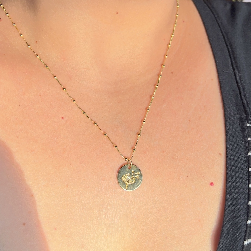 Sopro de Esperança e Transformação. Apresentamos o nosso Pingente Medalha Dente-de-Leão, uma representação da beleza efêmera e da transformação da natureza. Este pingente retrata as delicadas sementes do dente-de-leão sendo levadas pelo vento, simbolizando desejos, esperança e novos começos. Use-o como um amuleto de sorte, um lembrete de esperança ou como um presente significativo. Deixe este pingente ser uma expressão da sua ligação com a natureza e da sua apreciação pela beleza efêmera da vida.