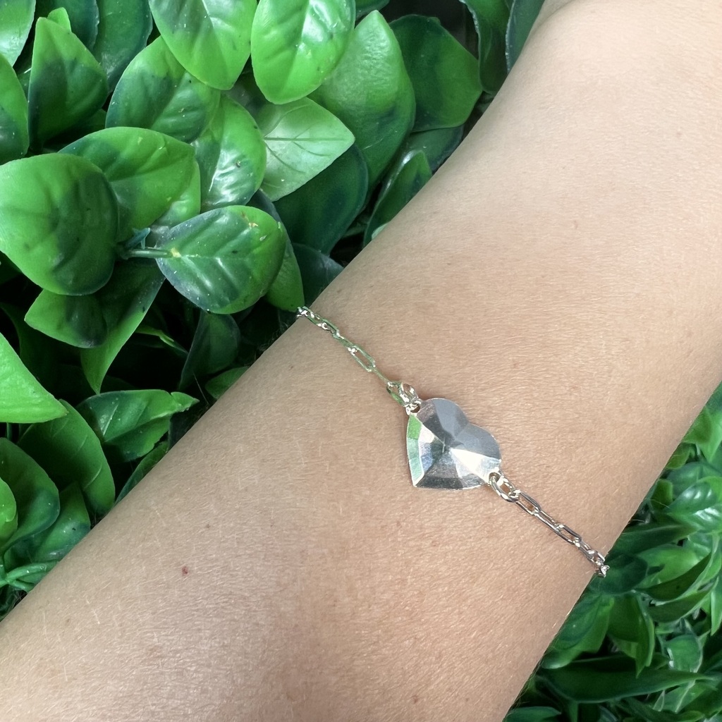 A Pulseira Coração 3D é uma joia moderna e deslumbrante, perfeita para quem adora inovação no design. Confeccionada em prata 925, esta pulseira traz um pingente em formato de coração facetado, que parece ter sido criado em 3D, oferecendo um brilho único e uma aparência futurista. Ideal para adicionar um toque de modernidade e sofisticação ao seu estilo.